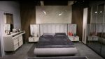 Chambre moderne en MDF avec armoire LED, lit brocart et mobilier élégant au design raffiné.