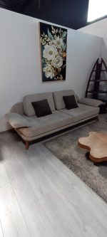 Le mobilier inclut également une table TV basse de haute gamme ainsi qu’un ensemble GIOTO en bois de 3 pièces, contribuant à l’harmonie visuelle de l’espace. Ce salon combine confort, modularité et esthétique, adapté aux intérieurs modernes recherchant un aménagement pratique et structuré.